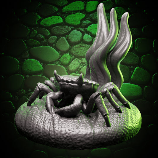 • Front view of Crab Familiar miniature on 25mm base with seaweed detail for tabletop RPGs