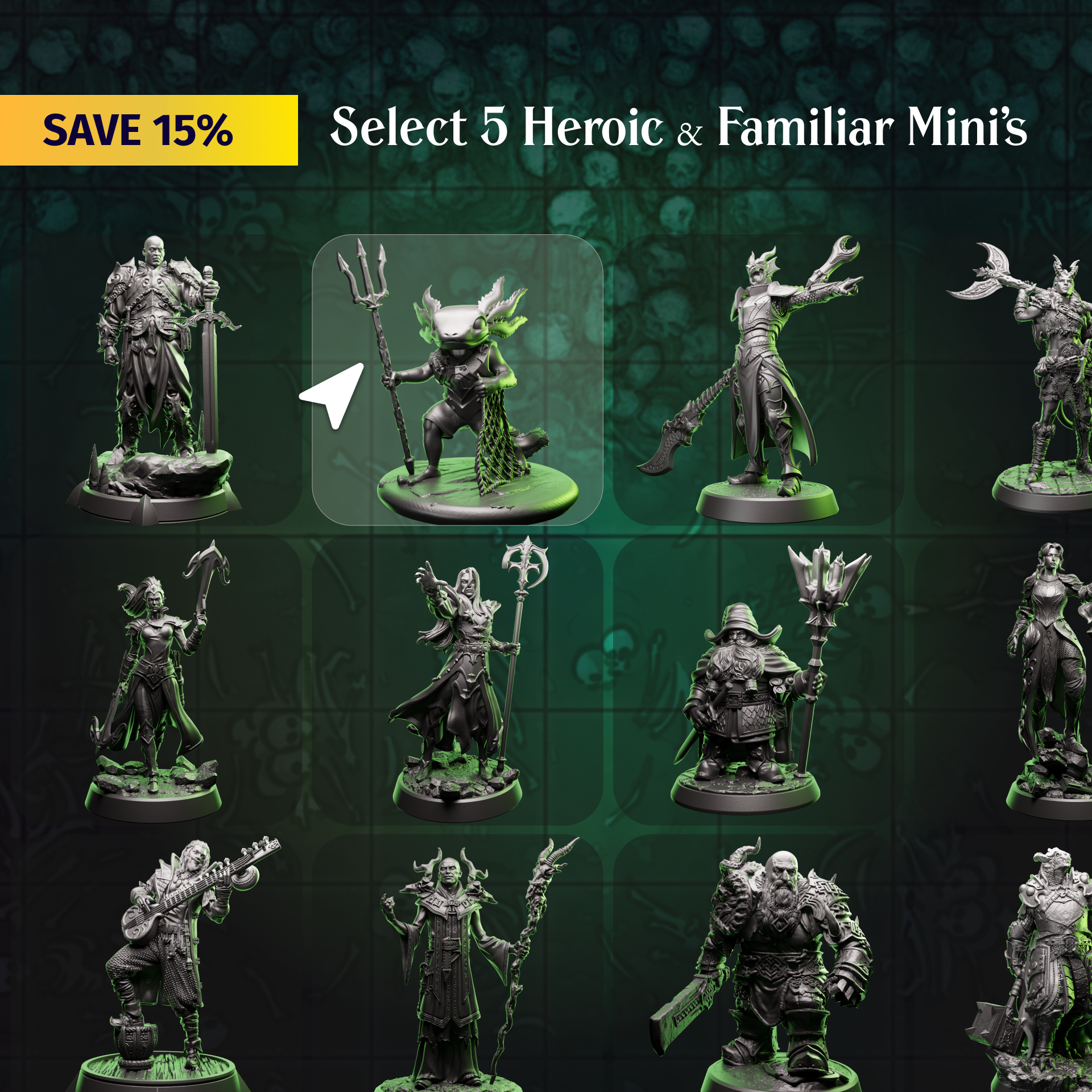 Build your dream party of heroes and animal companions! Choose from an ever-growing collection of highly detailed player characters, familiars, and animal companions to form your very own band of adventurers. Perfect for building a full adventuring party for you and your friends or just getting a sweet deal for yourself (we won't judge!), this bundle makes it easy to grab a collection of player characters and familiars at a great price.