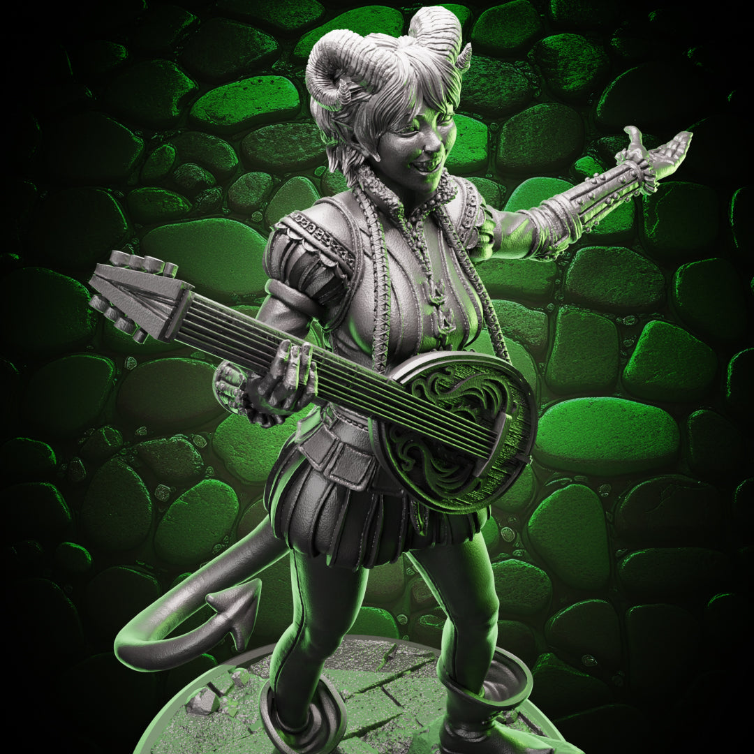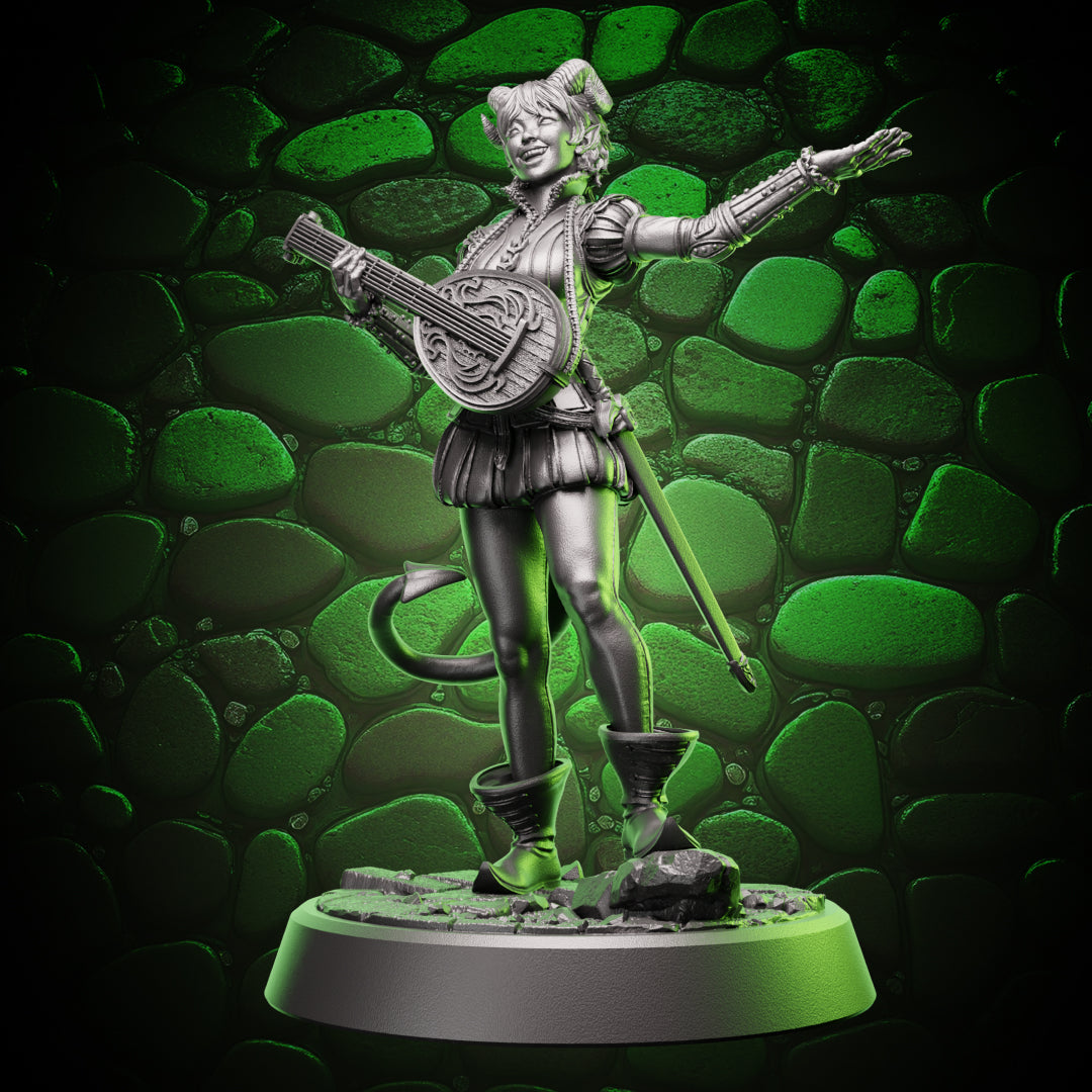 Enthrall your audience with our Female Tiefling Bard – a charismatic and melodious miniature that’s as enchanting as she is talented. Sculpted with sweeping horns, stylish performance attire, and a exquisite lute that plays stairway to heaven flawlessly, this high-quality resin figure conjures up both revelry and roguish charm. Whether serenading tavern patrons or inspiring allies on the battlefield, this harmonic performer brings a flourish of musical mischief to every adventure.