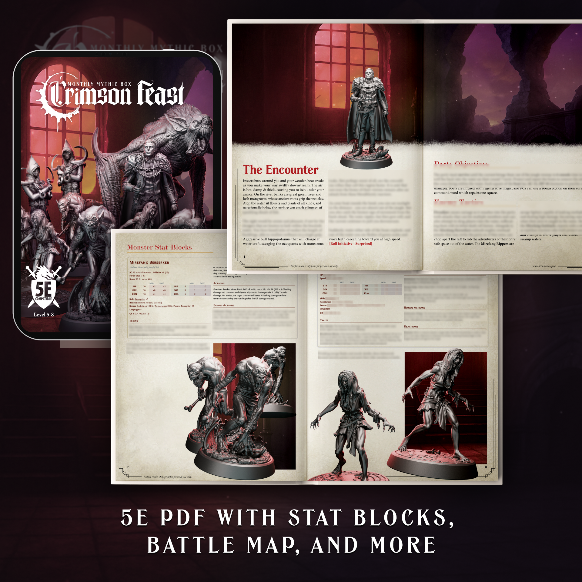 Each Mythic Box comes packed with highly detailed enemy miniatures, a custom Dungeon Master (DM) handbook featuring ready-to-play 5e stat blocks, a battle map, and encounter storylines, as well as a random mystery player character to spice things up a bit. It’s everything you need for exciting encounters every month!
